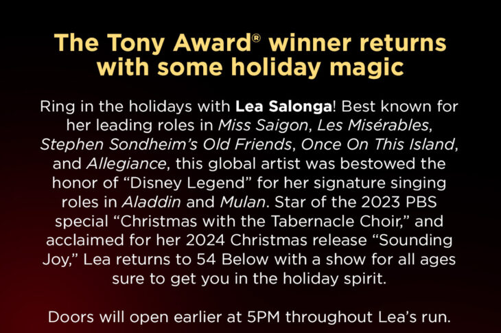 ENTERTAINMENT NEWS Lea Salonga Returns to 54 Below After A Decade – Breaking Entertainment News March 5, 2026