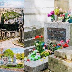 Jim Morrison’s grave is more than just a burial site—it’s a landmark of rock history, bringing thousands of fans to Paris every year. His grave has become a canvas for graffiti, a shrine for offerings, and even a stage for impromptu performances from devoted fans. Engraved on Morrison’s tombstone is the Greek phrase “KATA TON DAIMONA EAYTOY.” This has been widely translated as “True to his own spirit”.